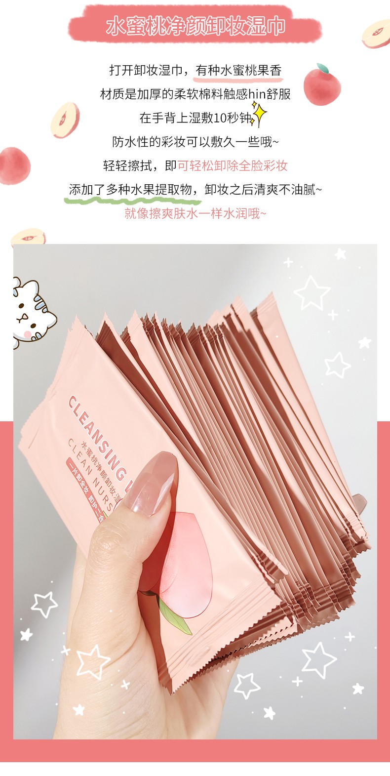 F7203-水蜜桃净颜卸妆湿巾25片